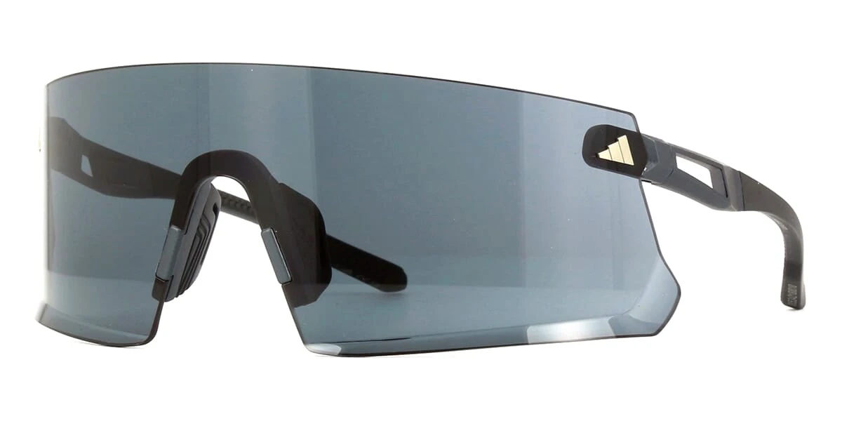 This shield Adidas sunglass comes in a satin grey with black rubber frame with grey lenses.