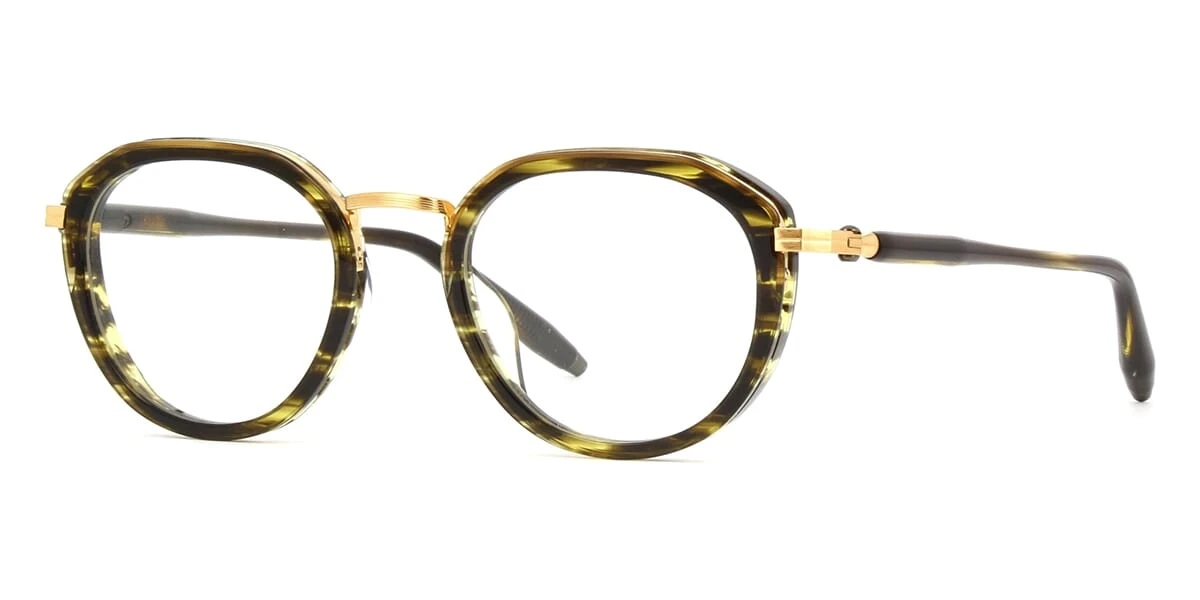 This round Akoni optical comes in a dark tortoise and brushed gold frame.