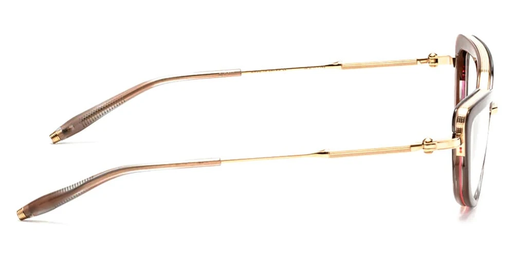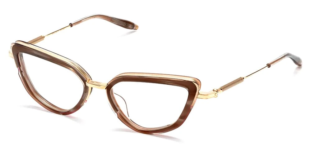This cat eye Akoni optical comes in a gold with grey swirl frame.