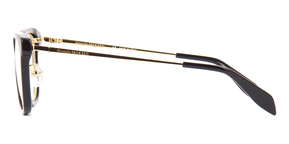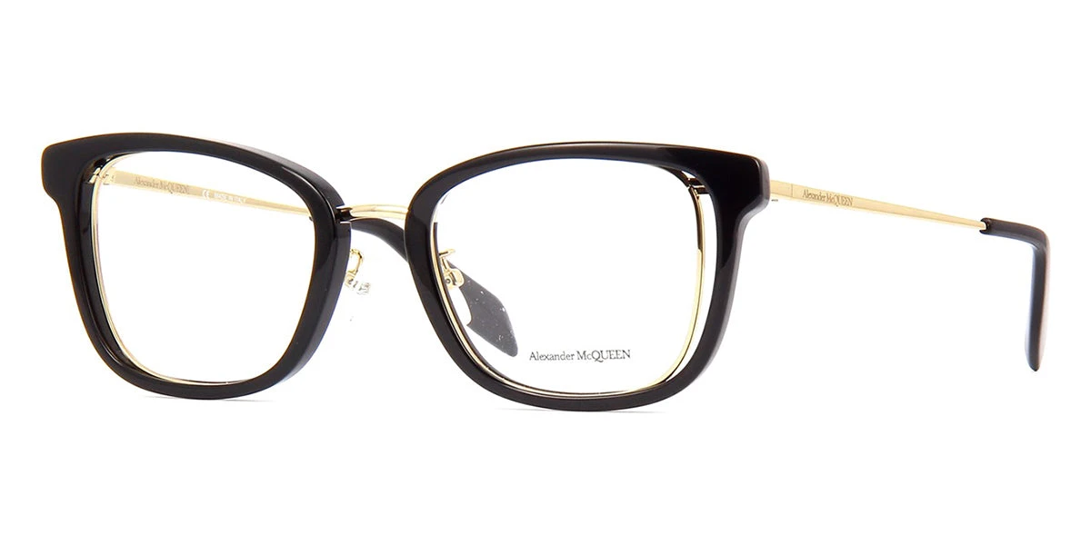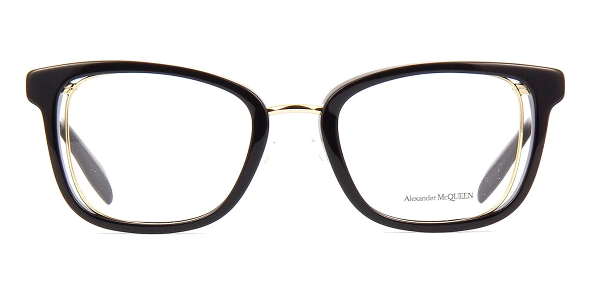 This square Alexander McQueen optical comes in a black and gold frame.