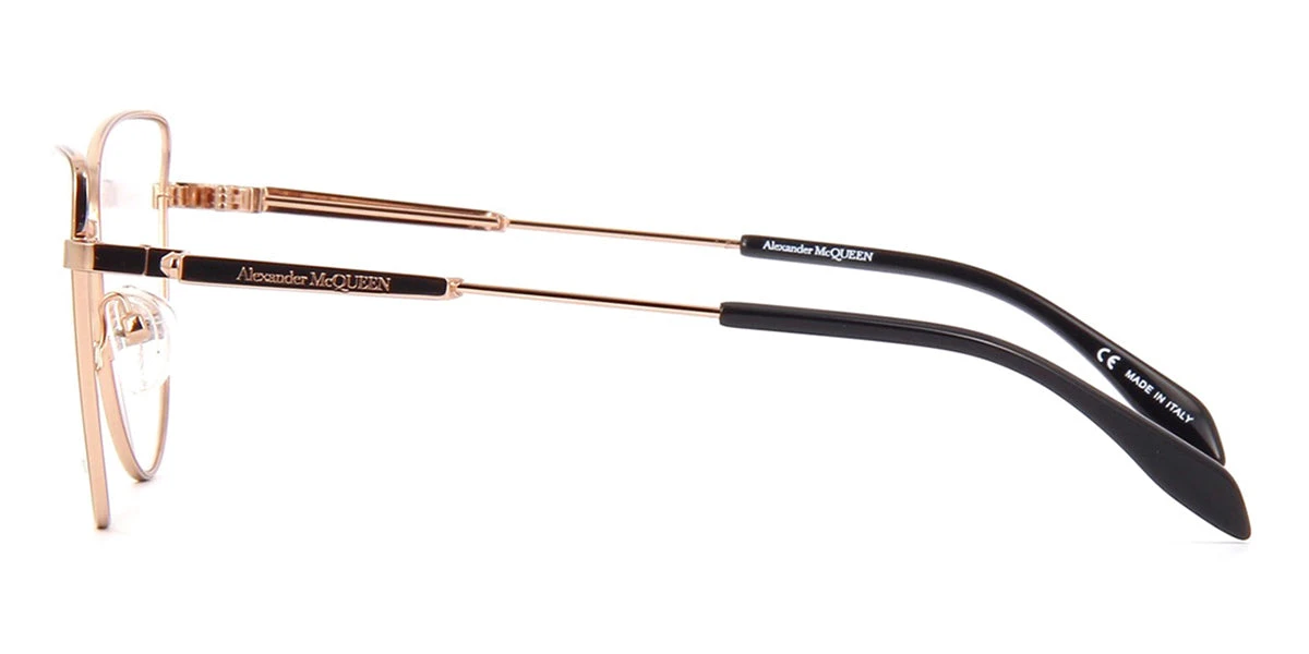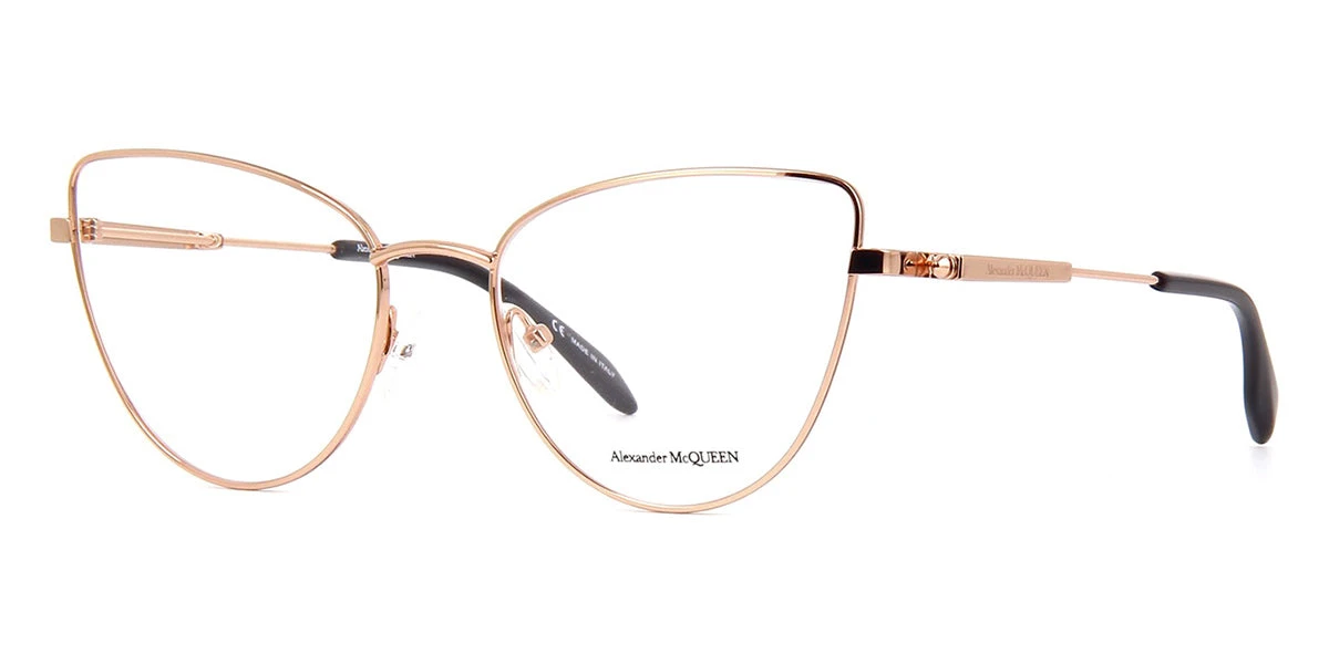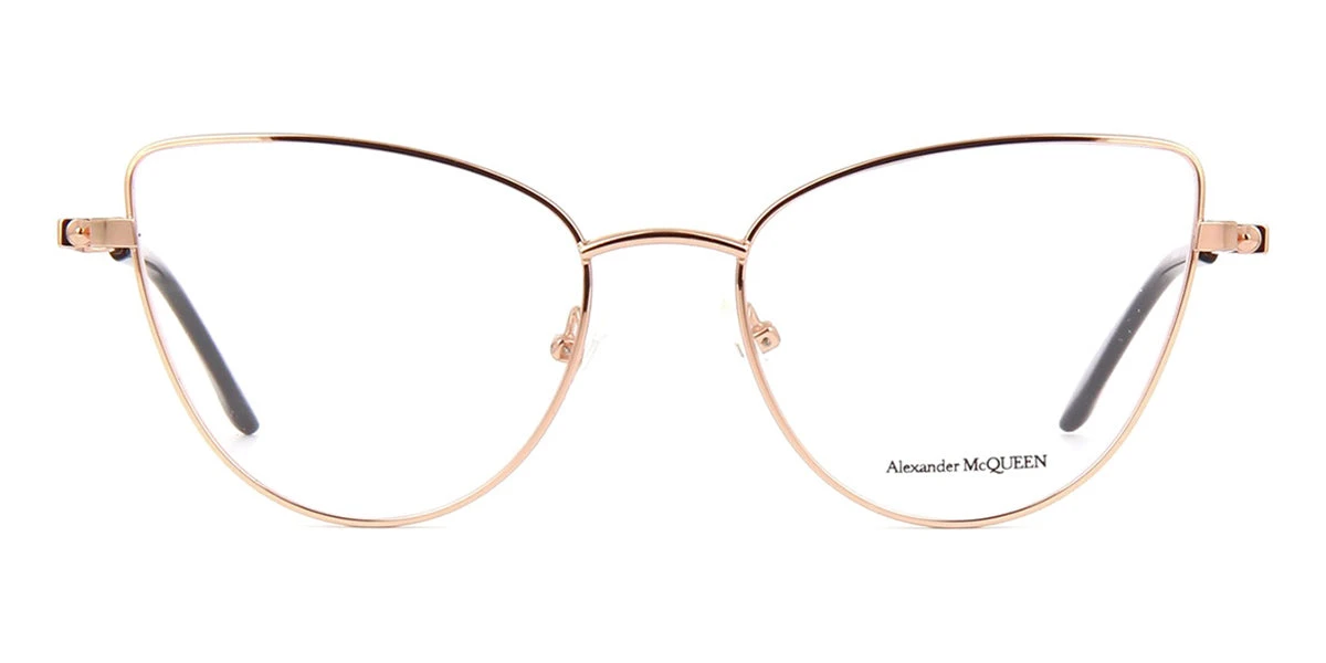 This cat eye Alexander McQueen optical comes in a gold frame.