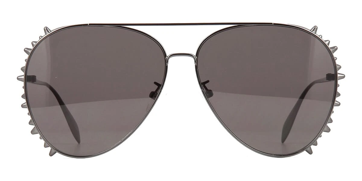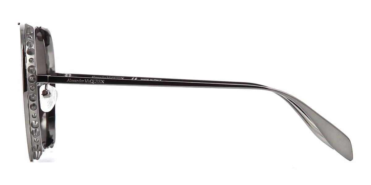 This aviator Alexander McQueen sunglass comes in a ruthenium frame with dark grey lenses.