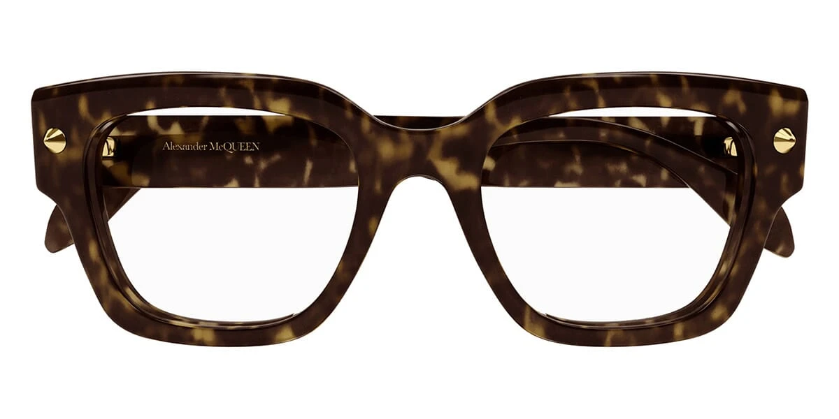 This square Alexander McQueen optical comes in a dark tortoise with gold frame.