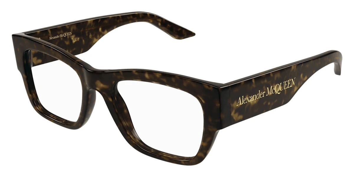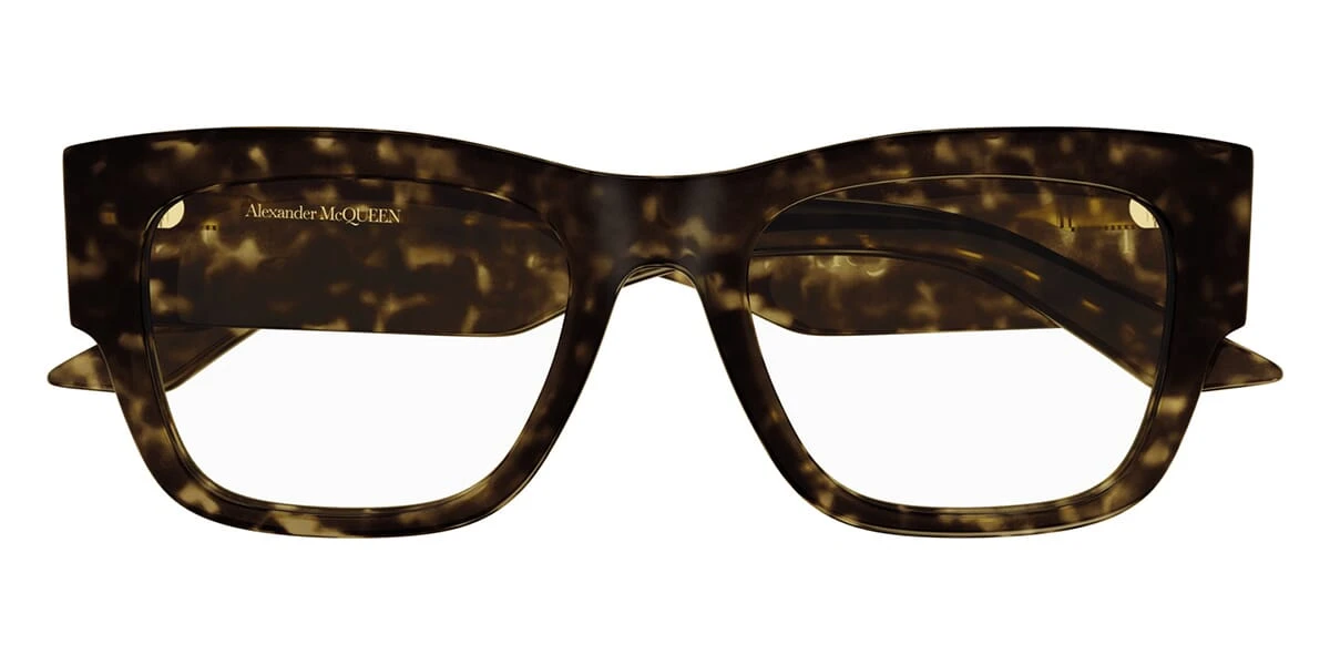 This square Alexander McQueen optical comes in a brown havana frame.