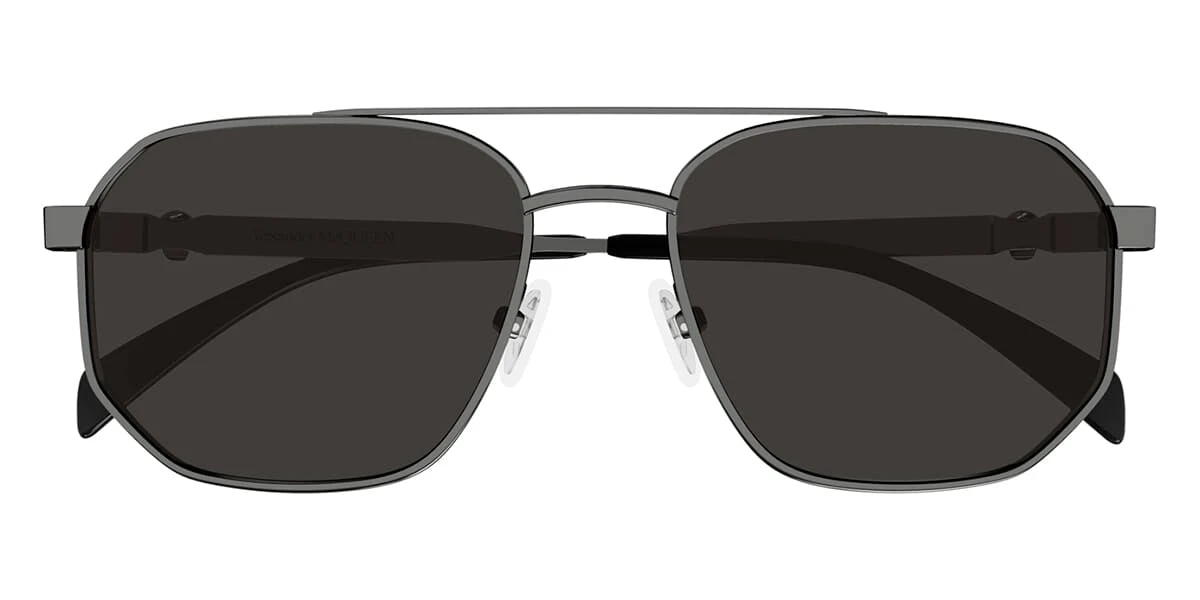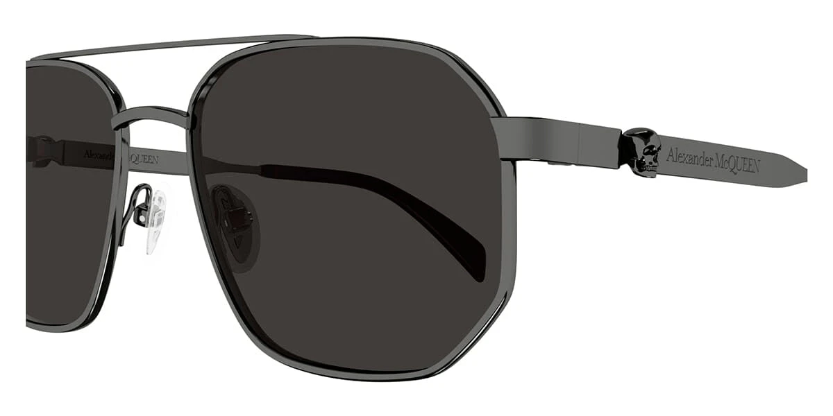 This aviator Alexander McQueen sunglass comes in a ruthenium frame with grey lenses.