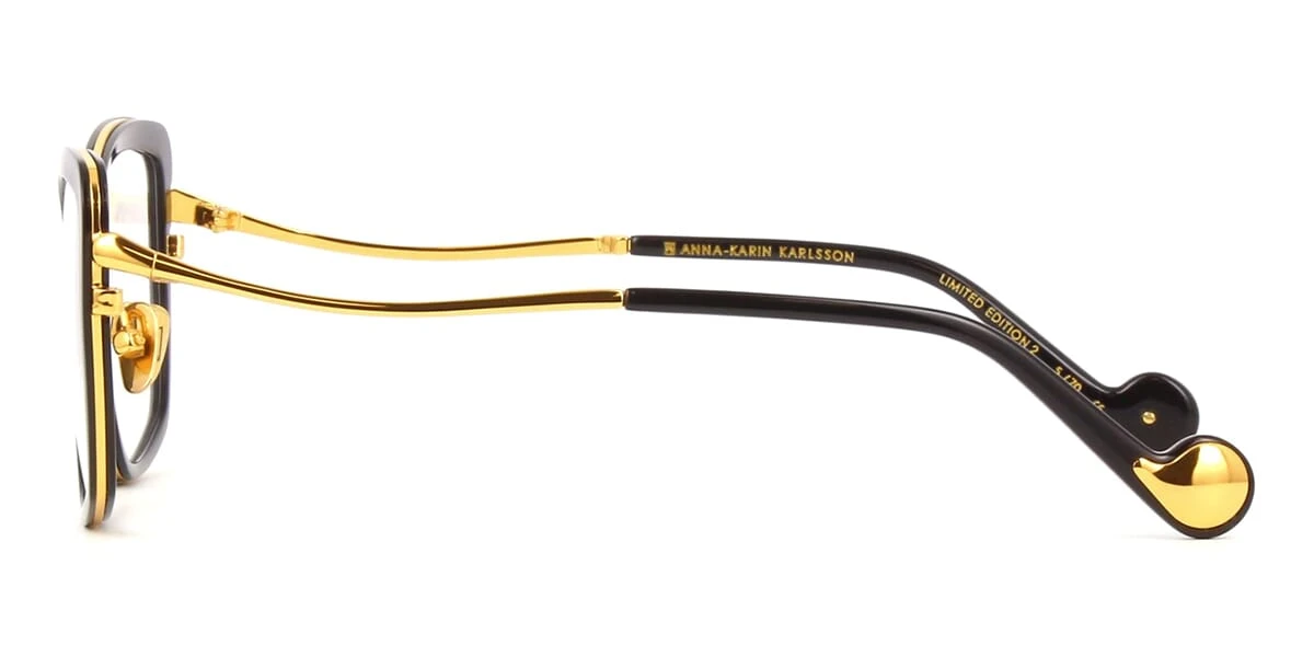 This cat eye Anna-Karin Karlsson optical comes in a black and gold frame.