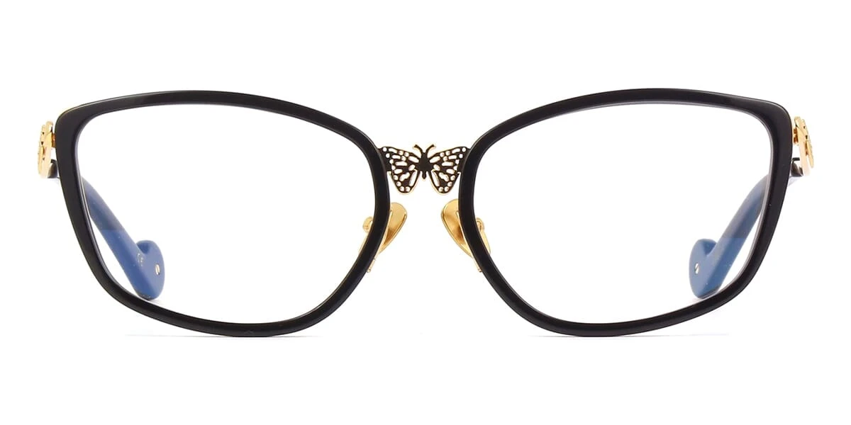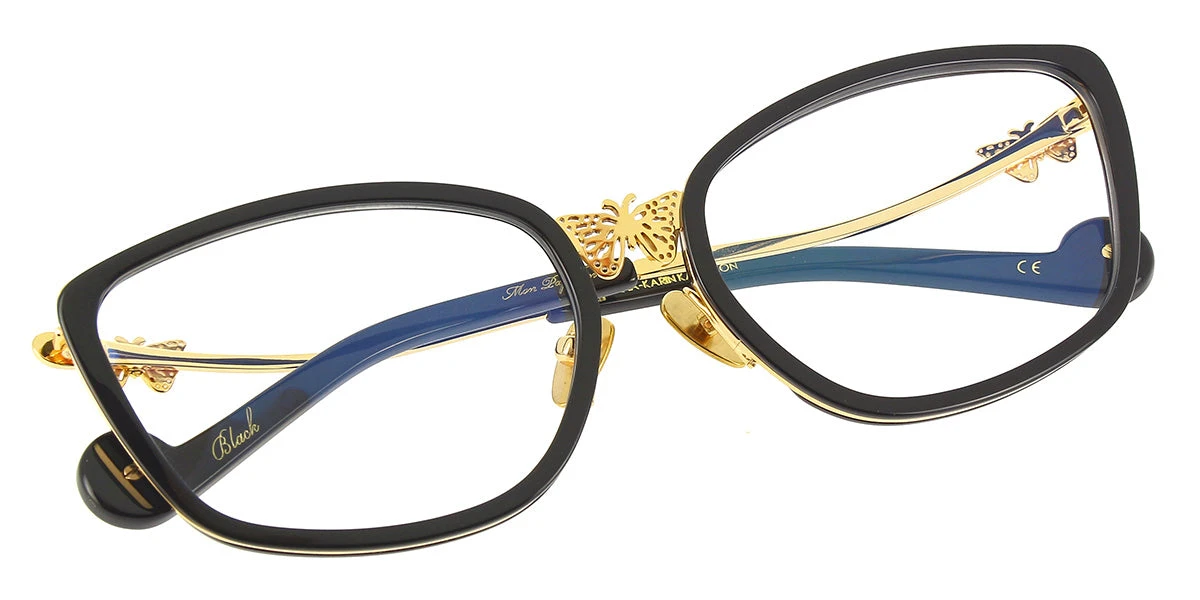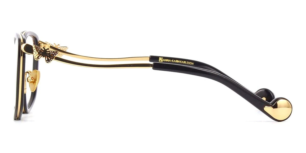 This cat eye Anna-Karin Karlsson optical comes in a black and gold frame.