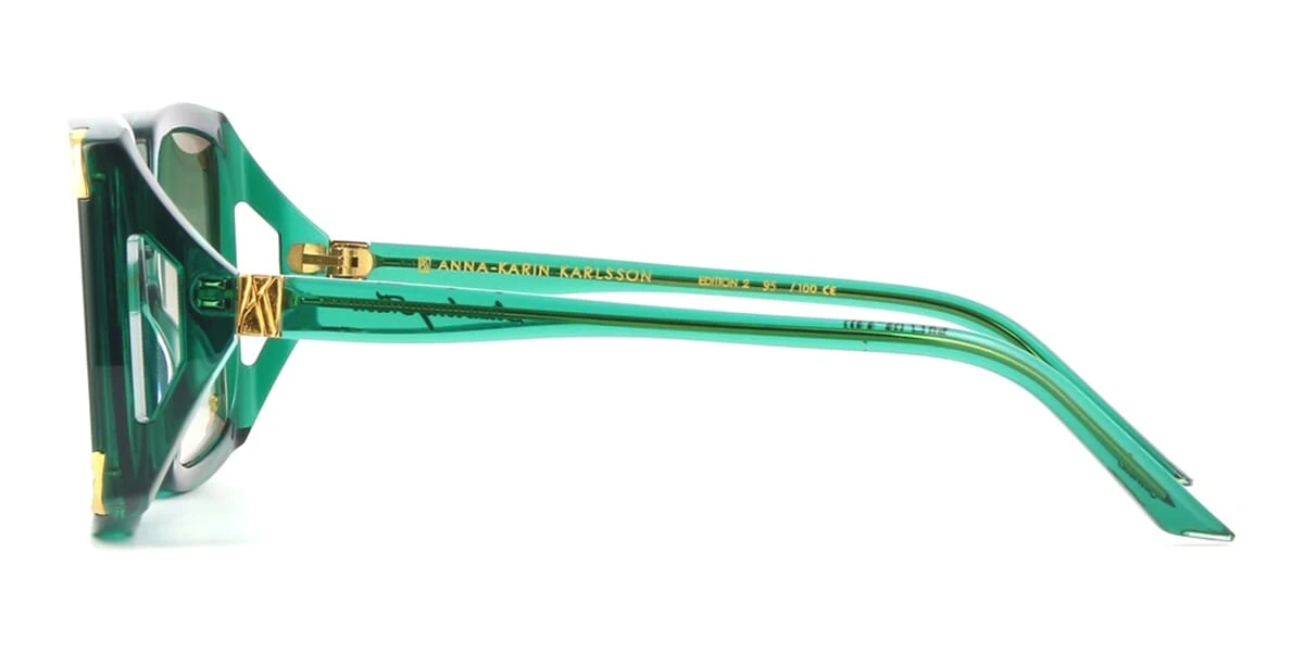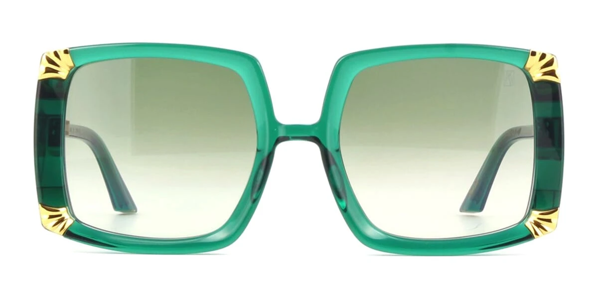 This square Anna-Karin Karlsson sunglass comes in a emerald frame with green gradient lenses.