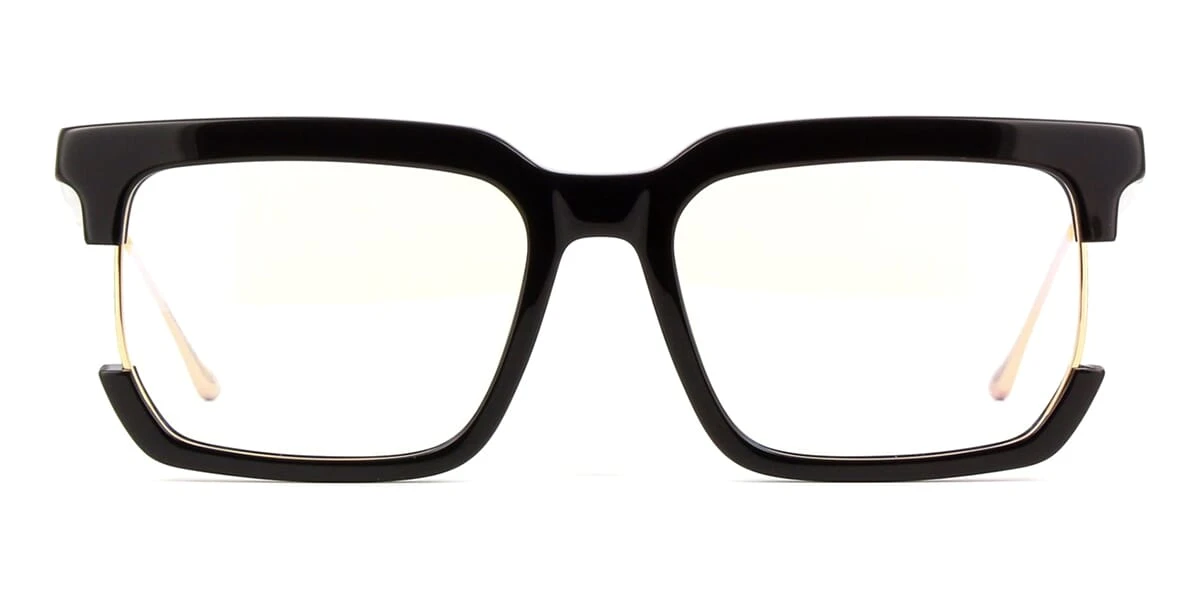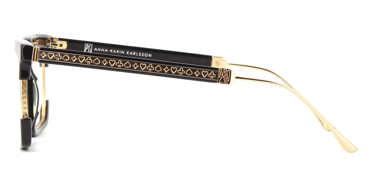 This square Anna-Karin Karlsson optical comes in a shiny black and gold frame.
