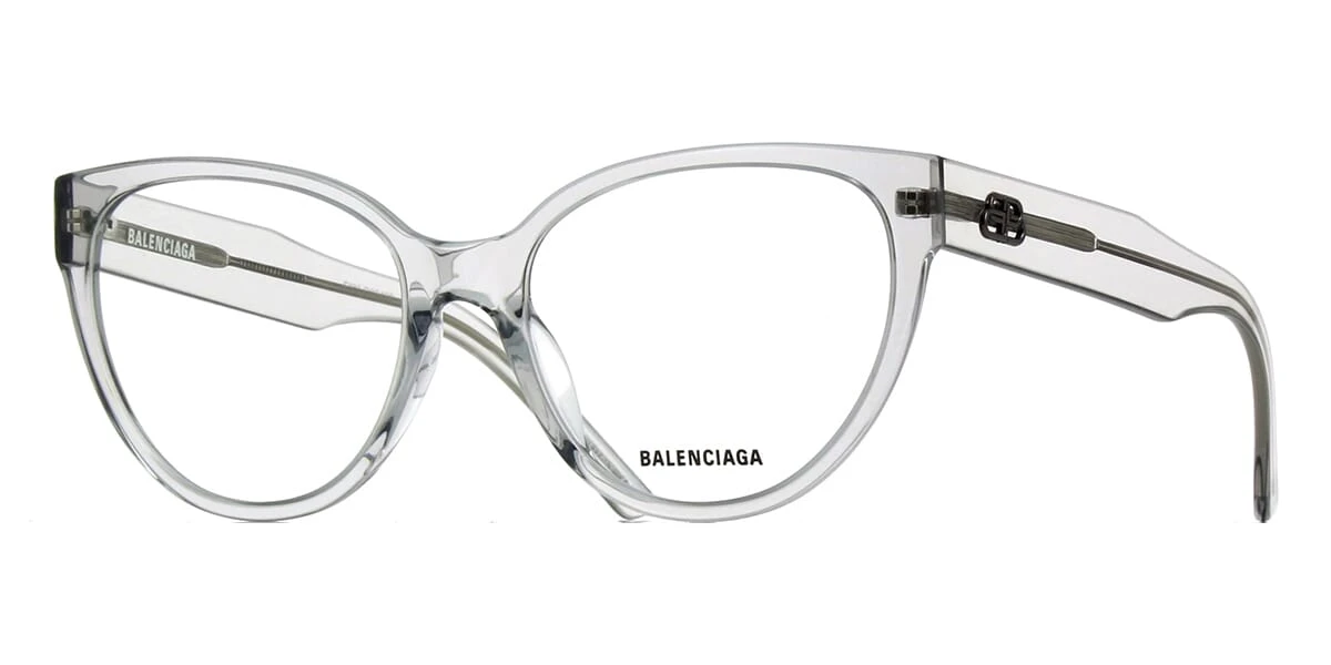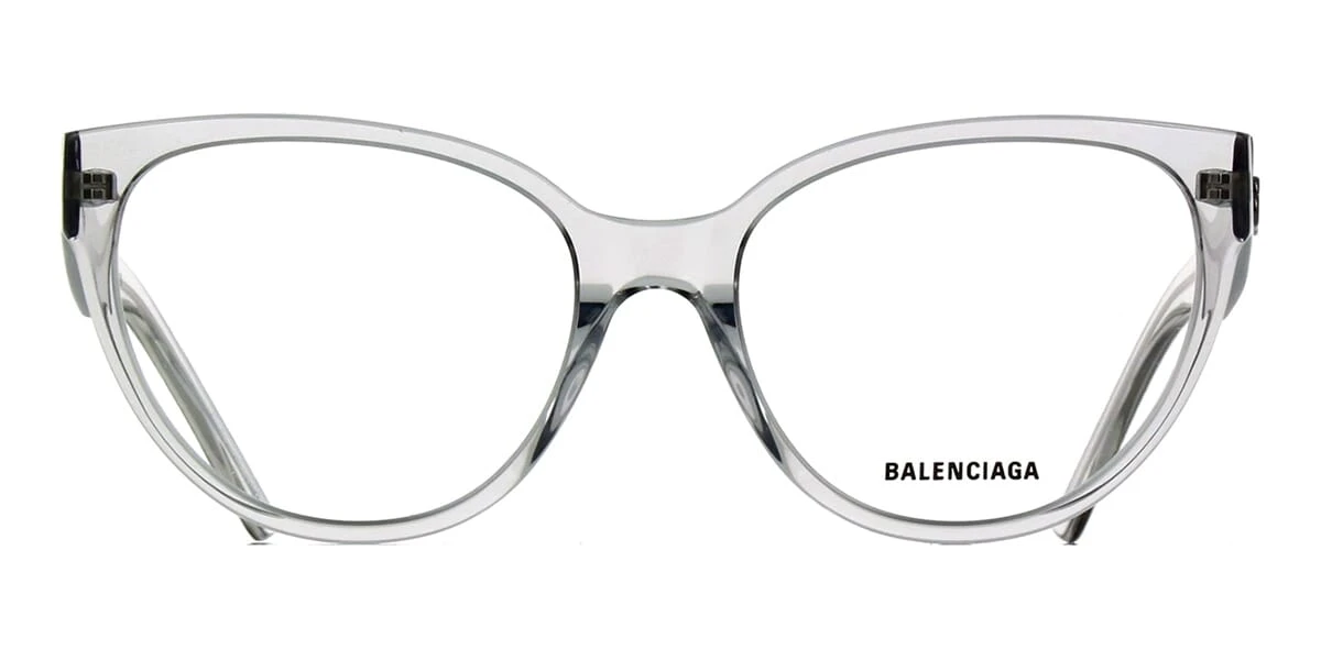 This cat eye Balenciaga optical comes in a grey crystal frame.