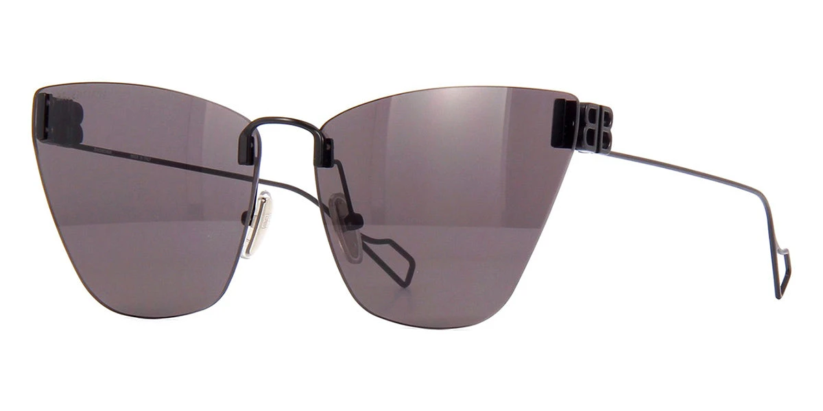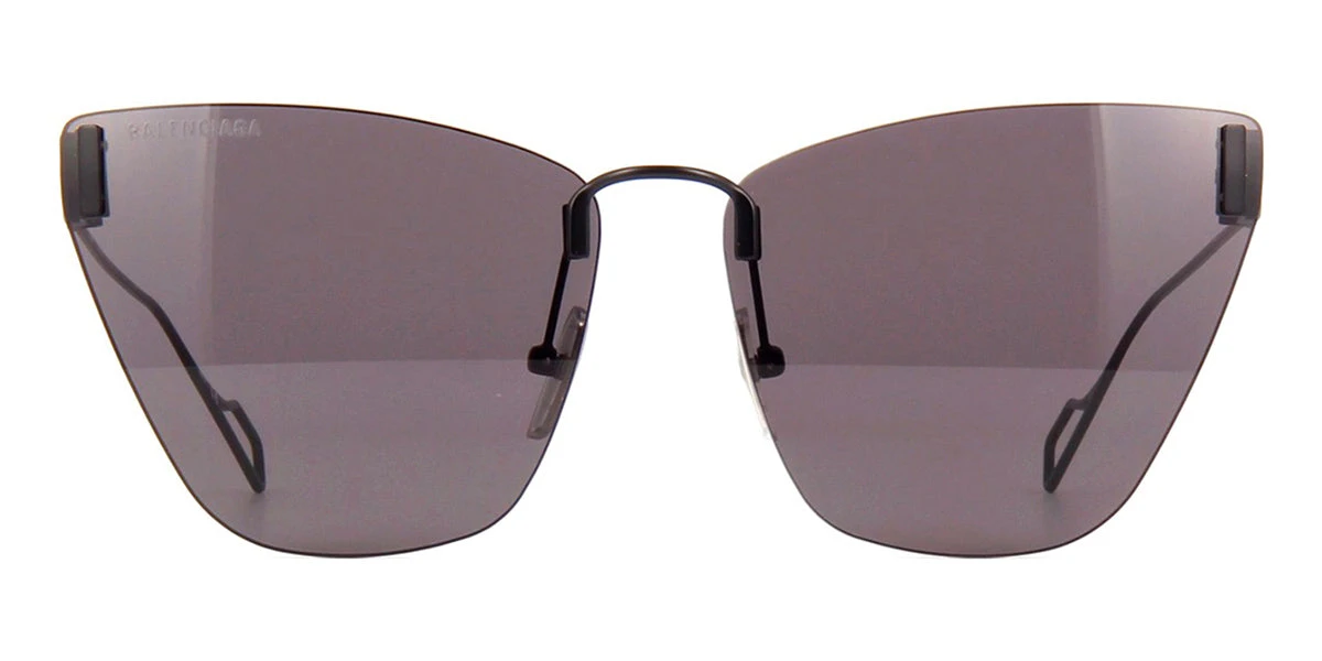 This cat eye Balenciaga sunglass comes in a black frame with grey lenses.