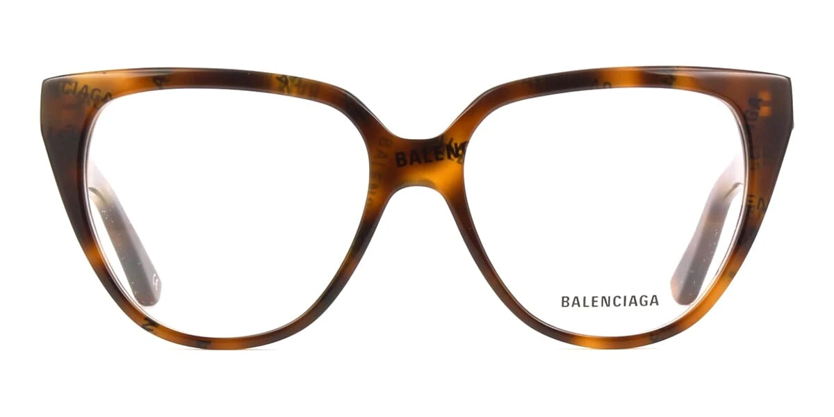 This cat eye Balenciaga optical comes in a dark havana with black logo pattern frame.