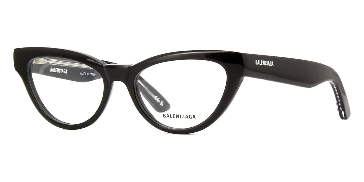 This cat eye Balenciaga optical comes in a shiny black frame.