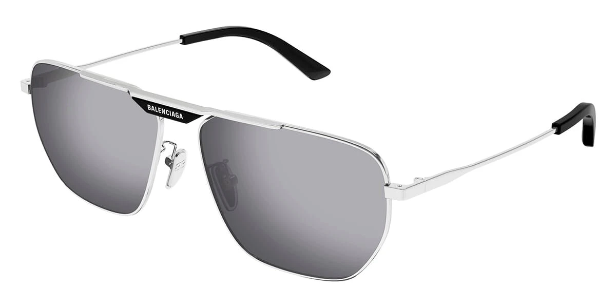 This aviator Balenciaga sunglass comes in a silver frame with blue with silver mirror lenses.