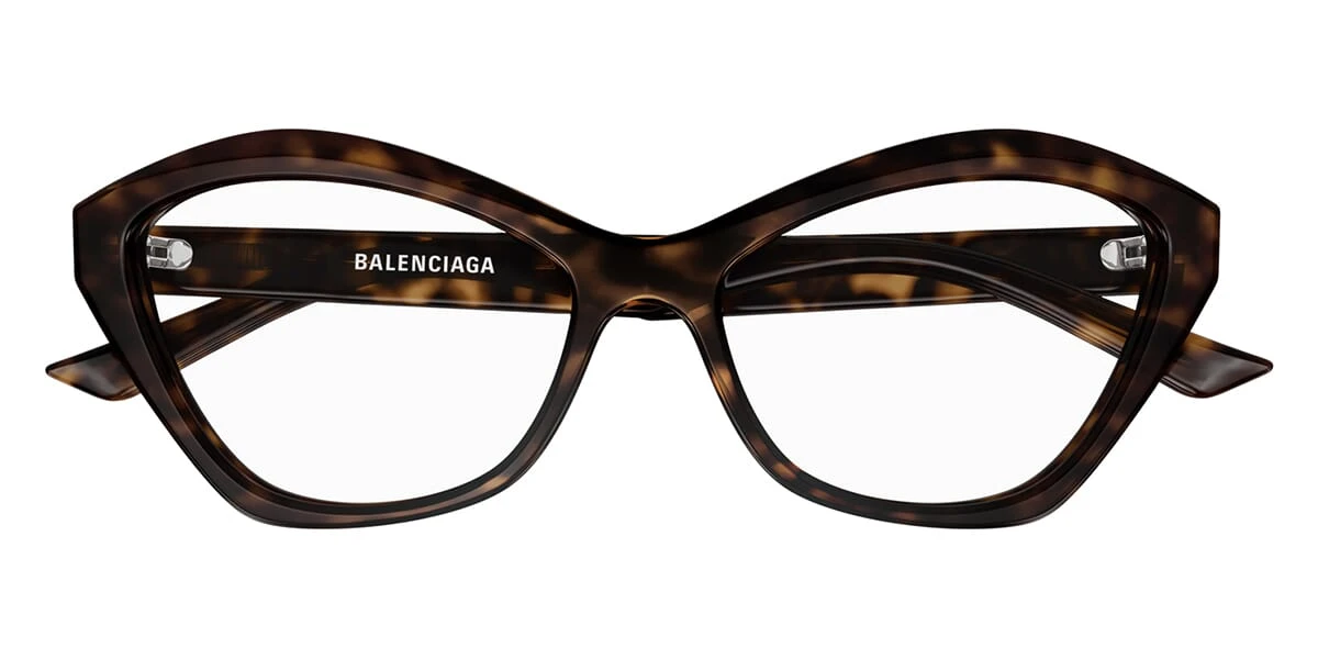 This cat eye Balenciaga optical comes in a dark havana frame.