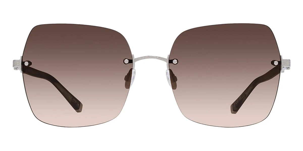 This square Barton Perreira sunglass comes in a silver and brown frame with brown lenses.