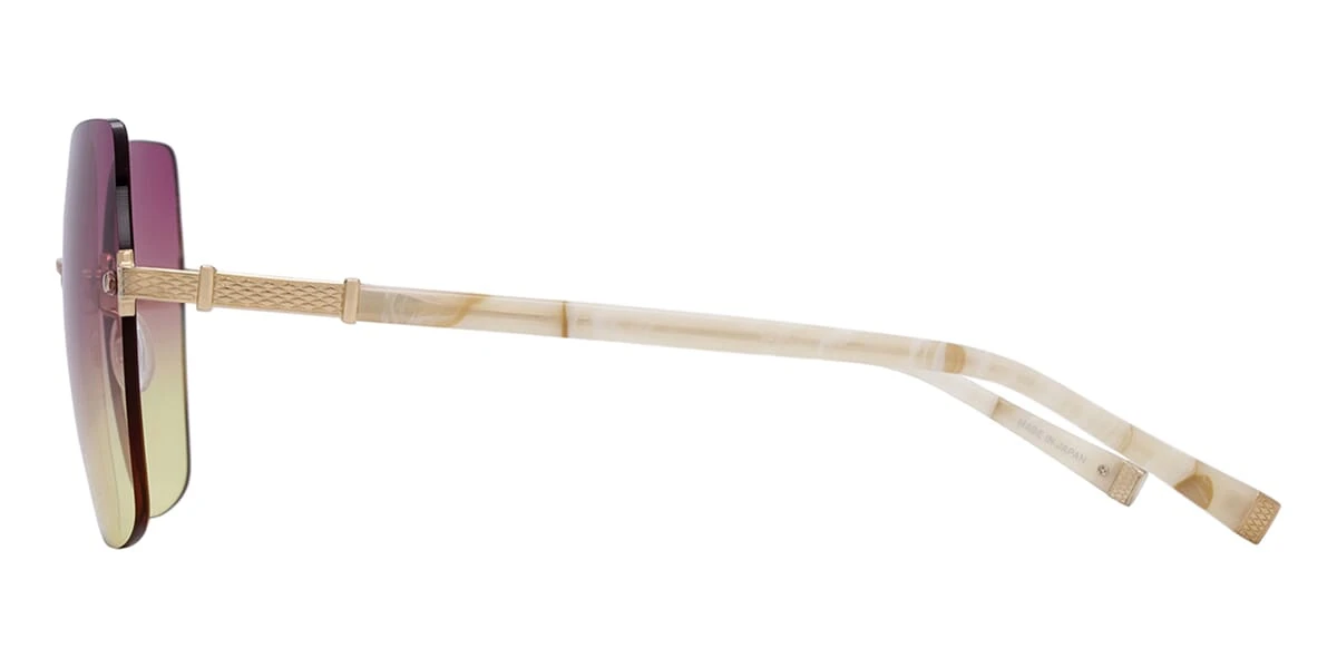 This square Barton Perreira sunglass comes in a gold frame with pink and yellow lenses.