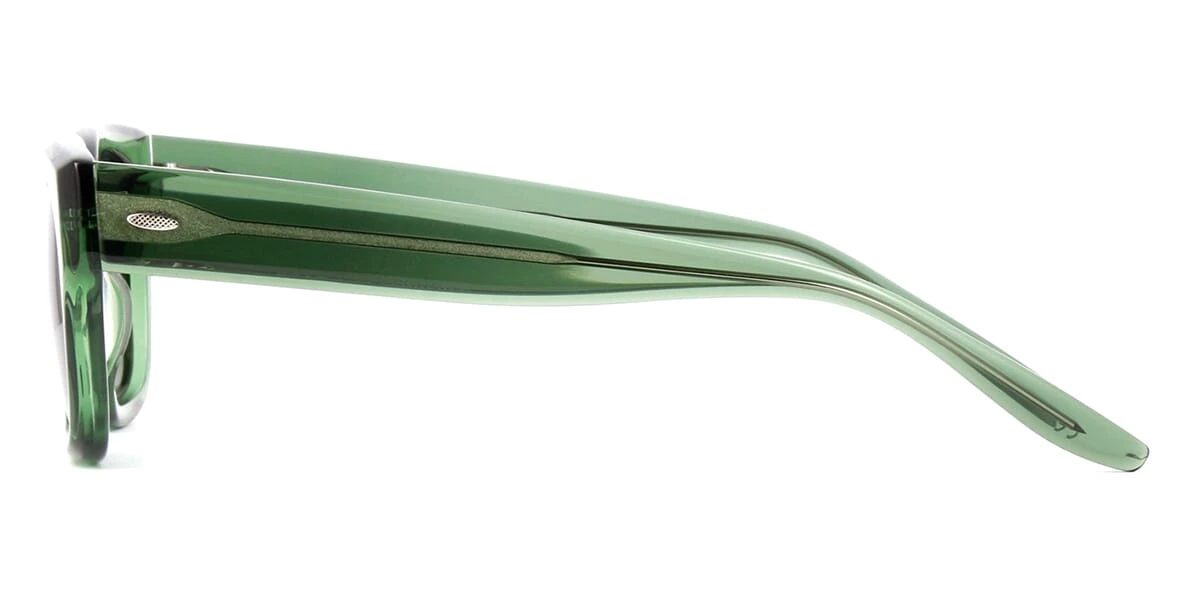This square Barton Perreira sunglass comes in a olive green crystal frame with vintage grey lenses.