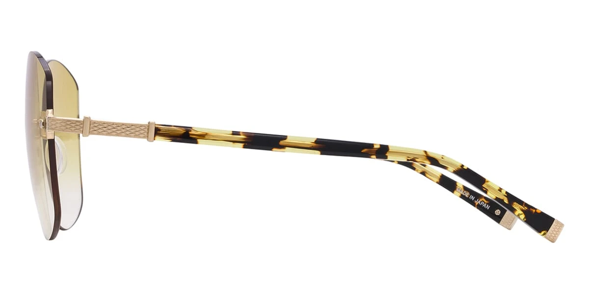 This round Barton Perreira sunglass comes in a gold and havana frame with yellow lenses.