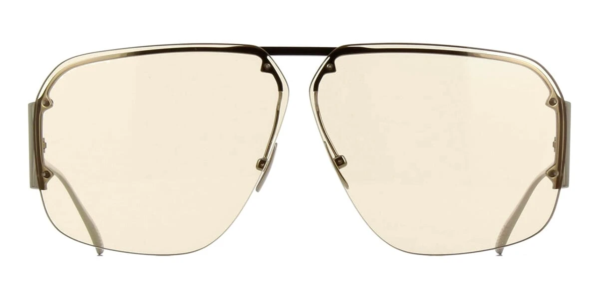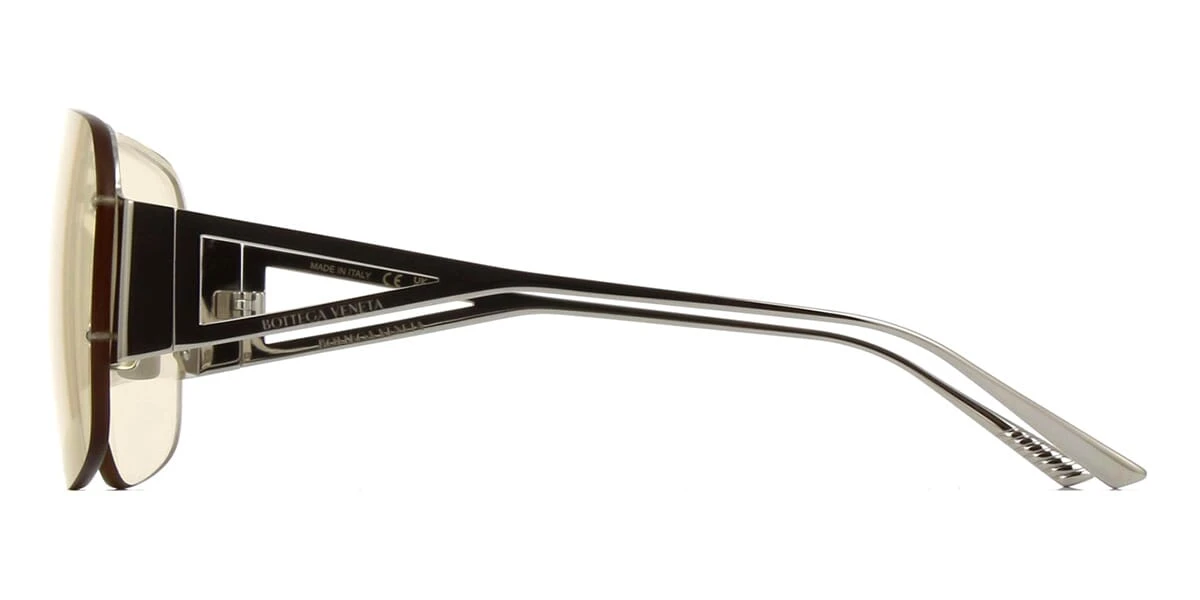 This square Bottega Veneta sunglass comes in a silver frame with light brown lenses.