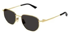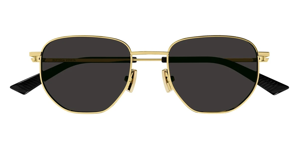 This aviator Bottega Veneta sunglass comes in a gold frame with grey lenses.