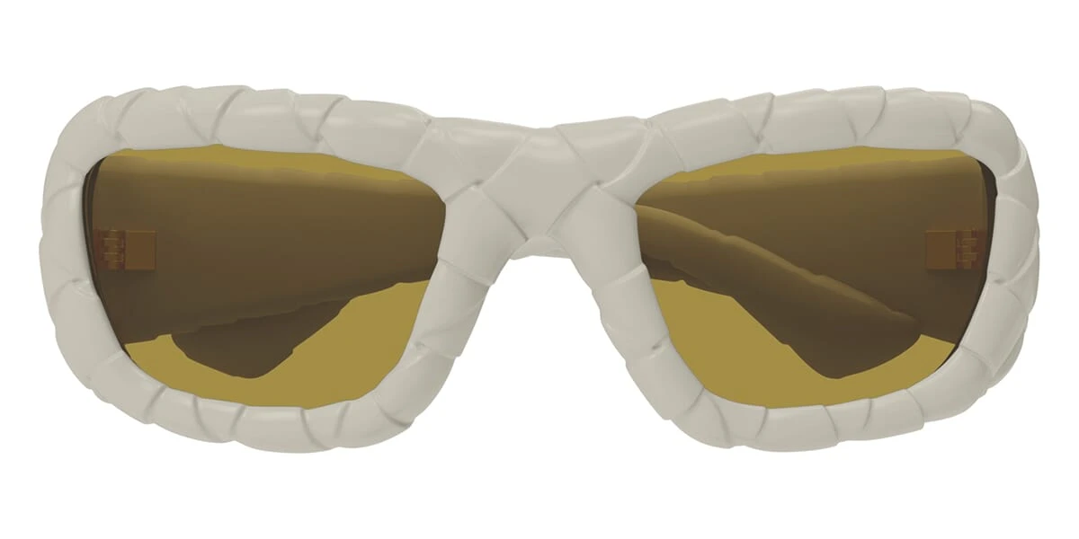 This square Bottega Veneta sunglass comes in a white frame with brown lenses.