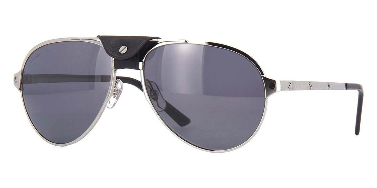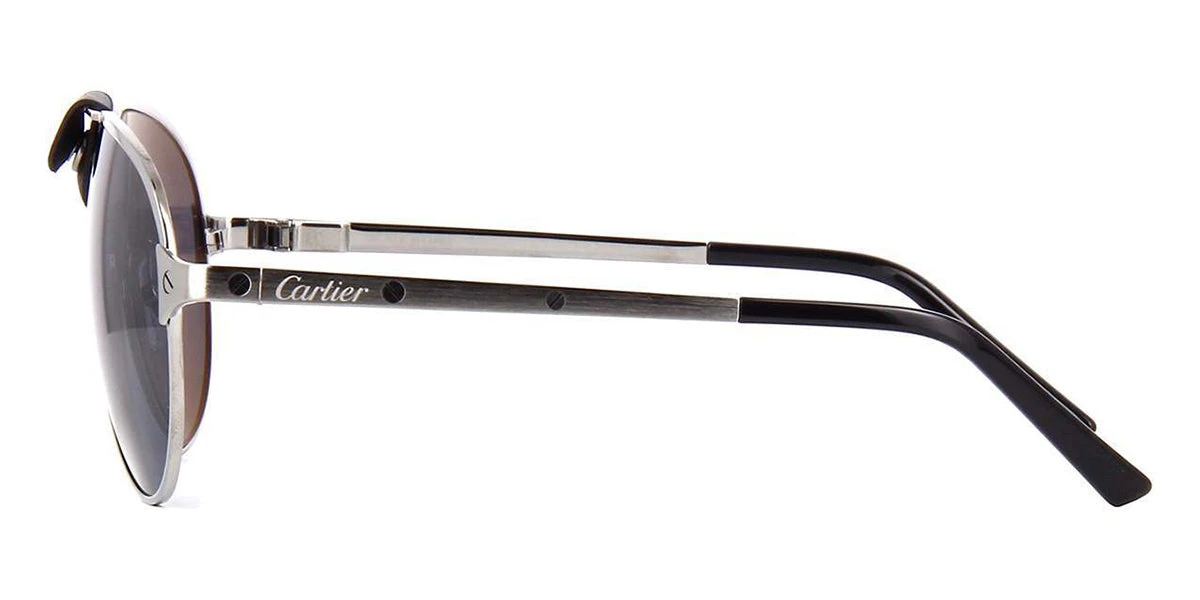 This aviator Cartier sunglass comes in a ruthenium frame with grey polarised lenses.