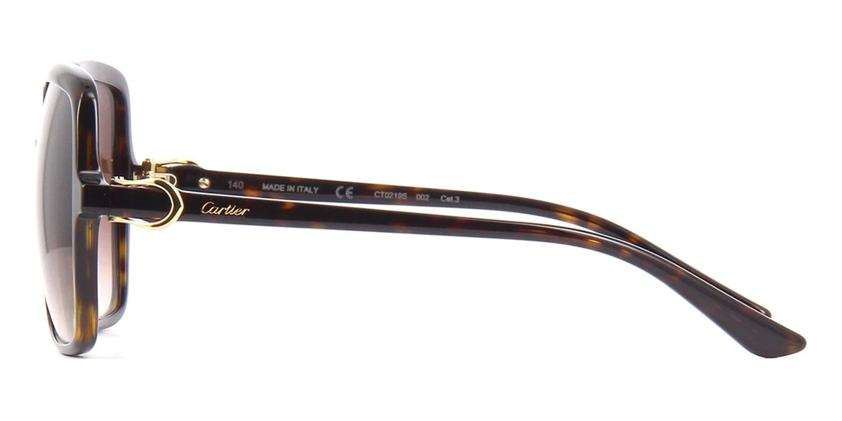 This square Cartier sunglass comes in a havana frame with brown gradient lenses.