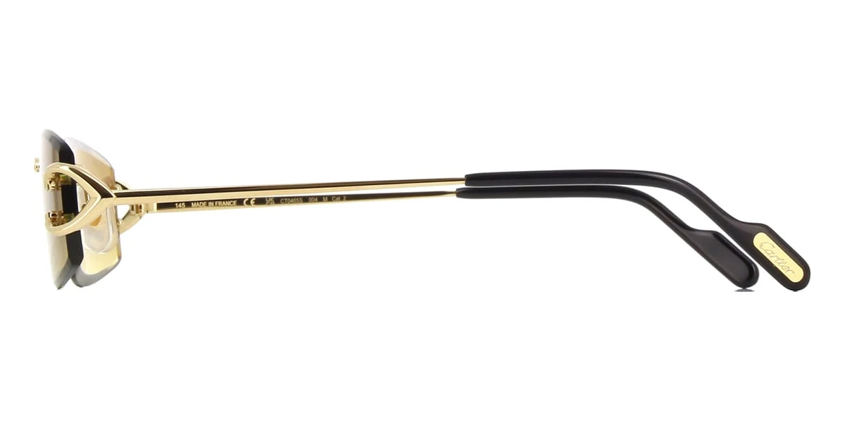 This rectangular Cartier sunglass comes in a shiny gold frame with brown gradient lenses.