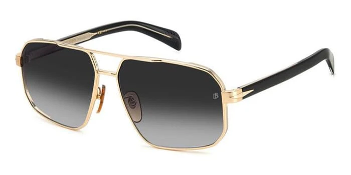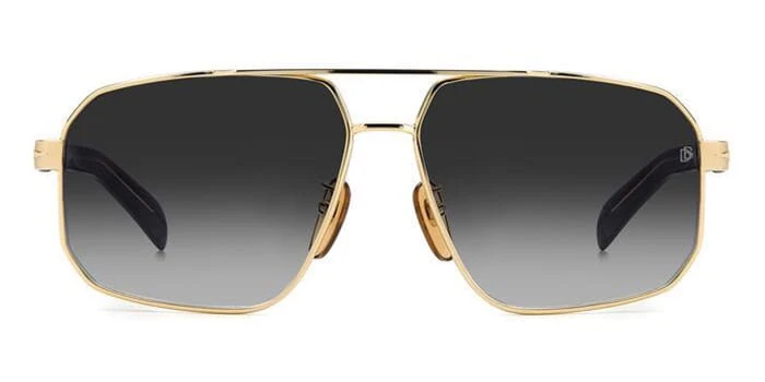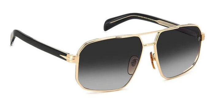 This rectangular David Beckham sunglass comes in a gold and black frame with grey gradient lenses.