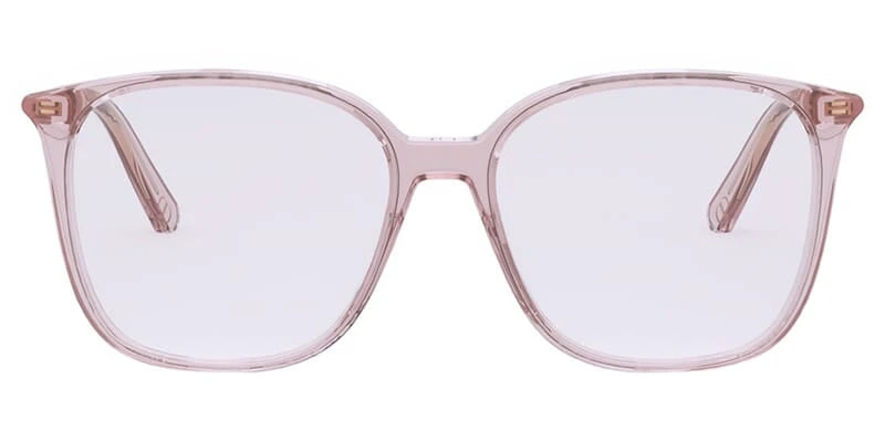This square Dior optical comes in a shiny pink crystal frame.
