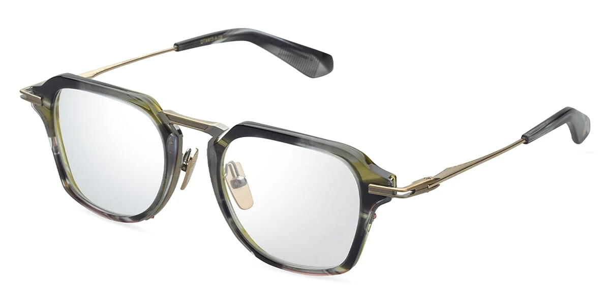 This square Dita optical comes in a cyber smoke with white gold and gold frame.