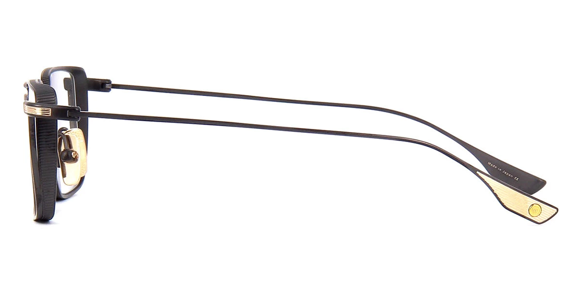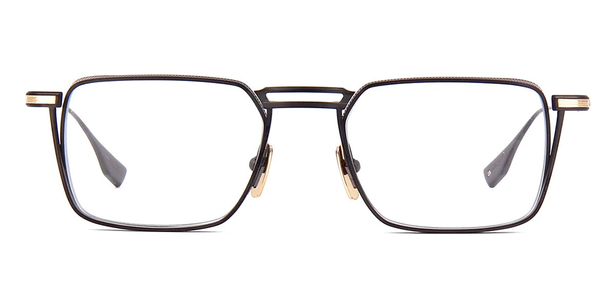 This rectangular Dita optical comes in a black iron and white gold frame.