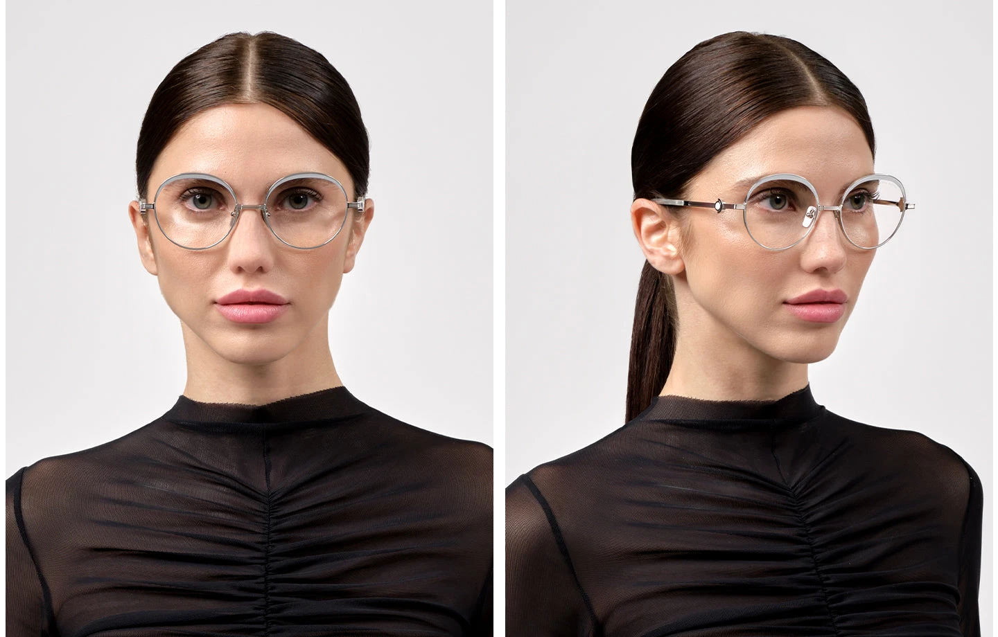 This round Dita optical comes in a silver pearl frame.