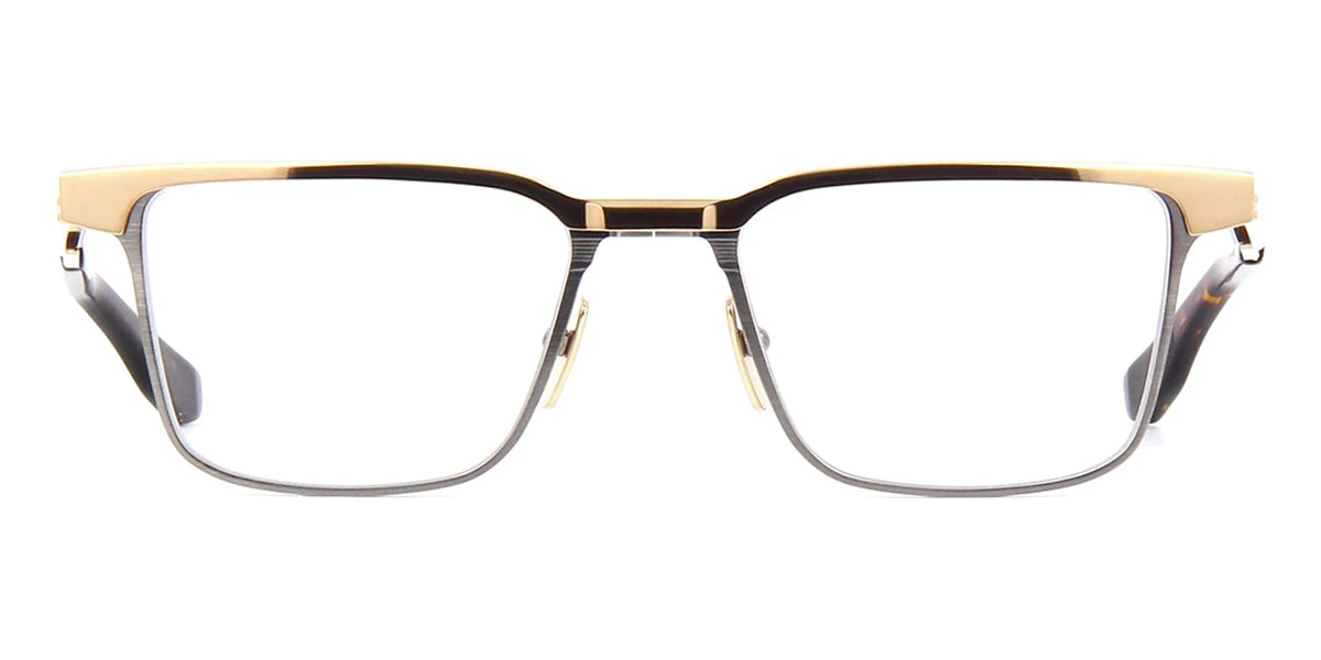 This square Dita Senator Three DTX 137 03 optical comes in a white gold and antique silver frame.