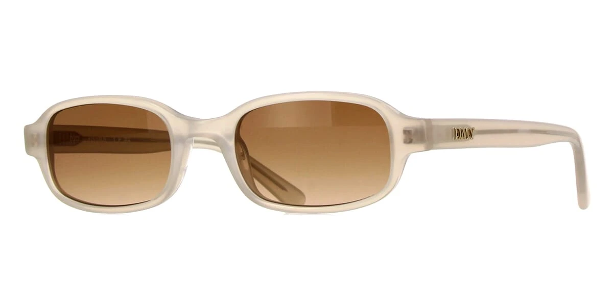 This square DMY Studios sunglass comes in a milky white frame with brown gradient lenses.