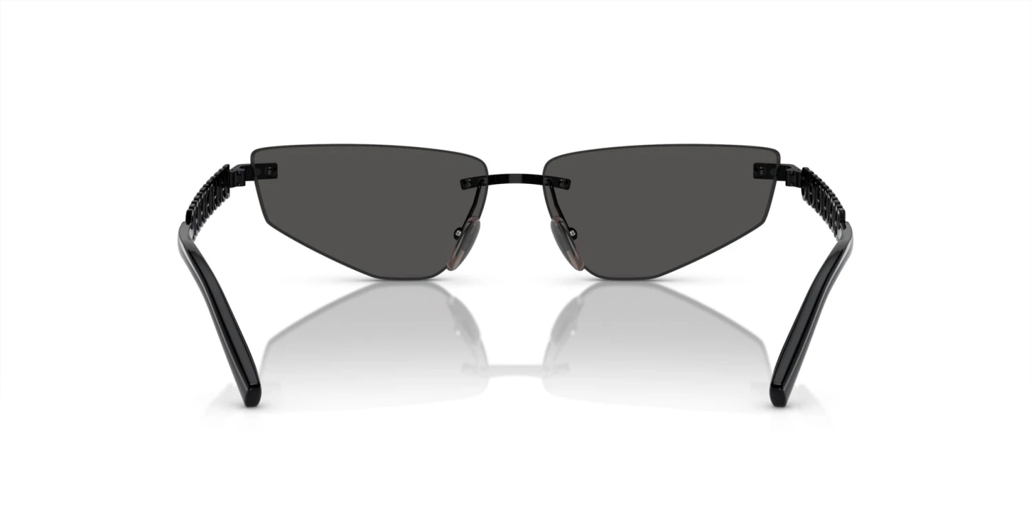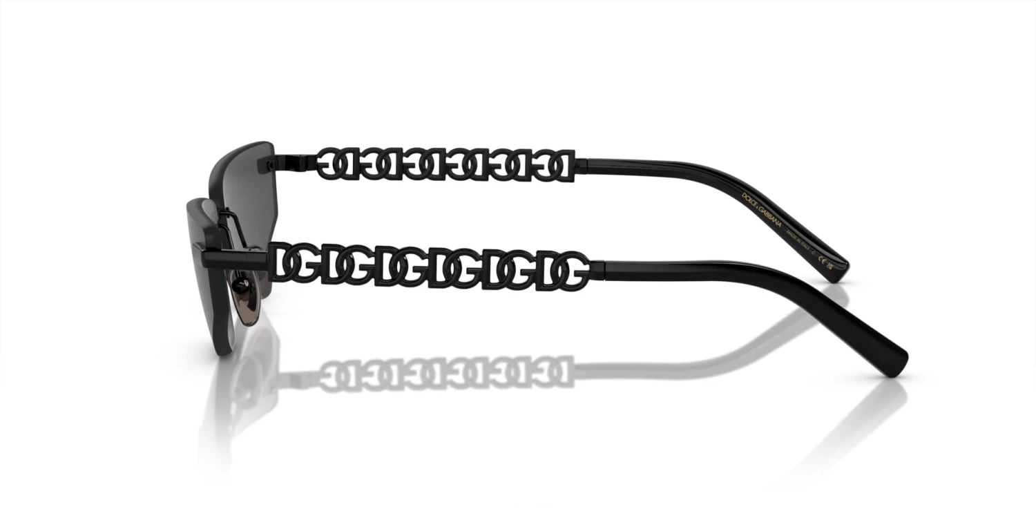 This rectangular Dolce&Gabbana sunglass comes in a black frame with dark grey lenses.