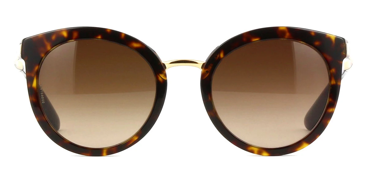 This round Dolce&Gabbana sunglass comes in a havana frame with brown gradient lenses.