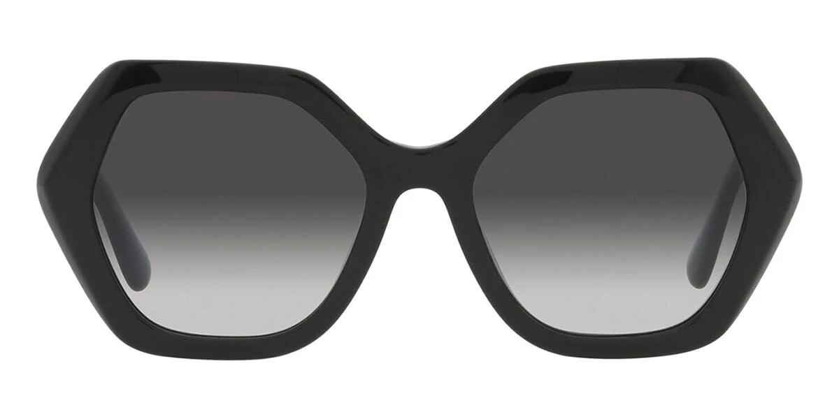 This rectangular Dolce&Gabbana sunglass comes in a black frame with grey gradient lenses.