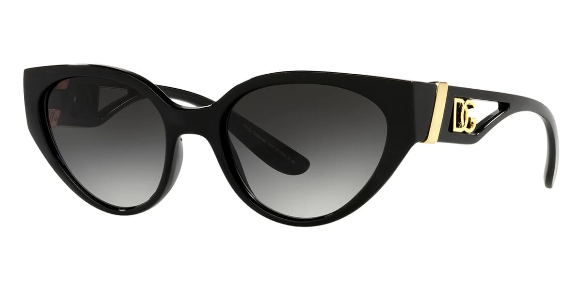 This cat eye Dolce&Gabbana sunglass comes in a black frame with gradient grey lenses.