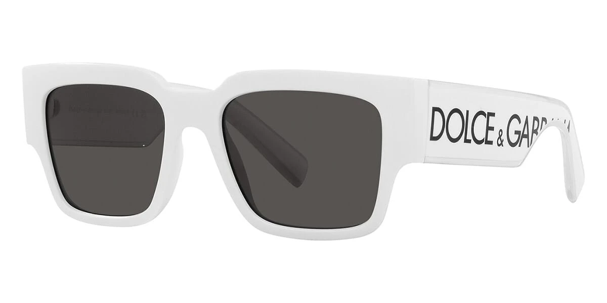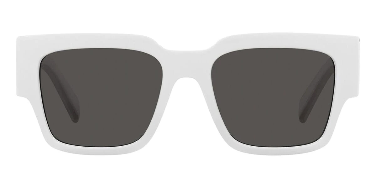 This square Dolce&Gabbana sunglass comes in a white frame with dark grey lenses.