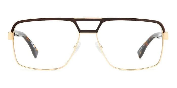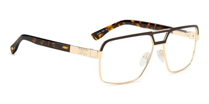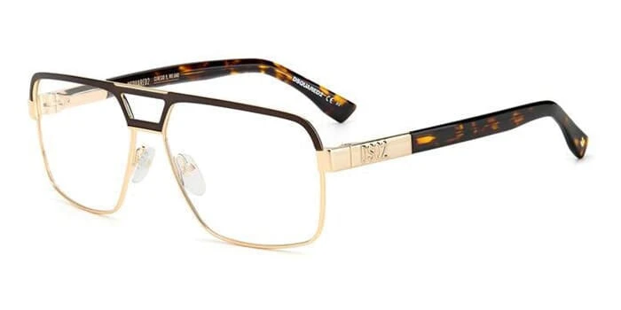 This square Dsquared2 optical comes in a matte brown gold frame.