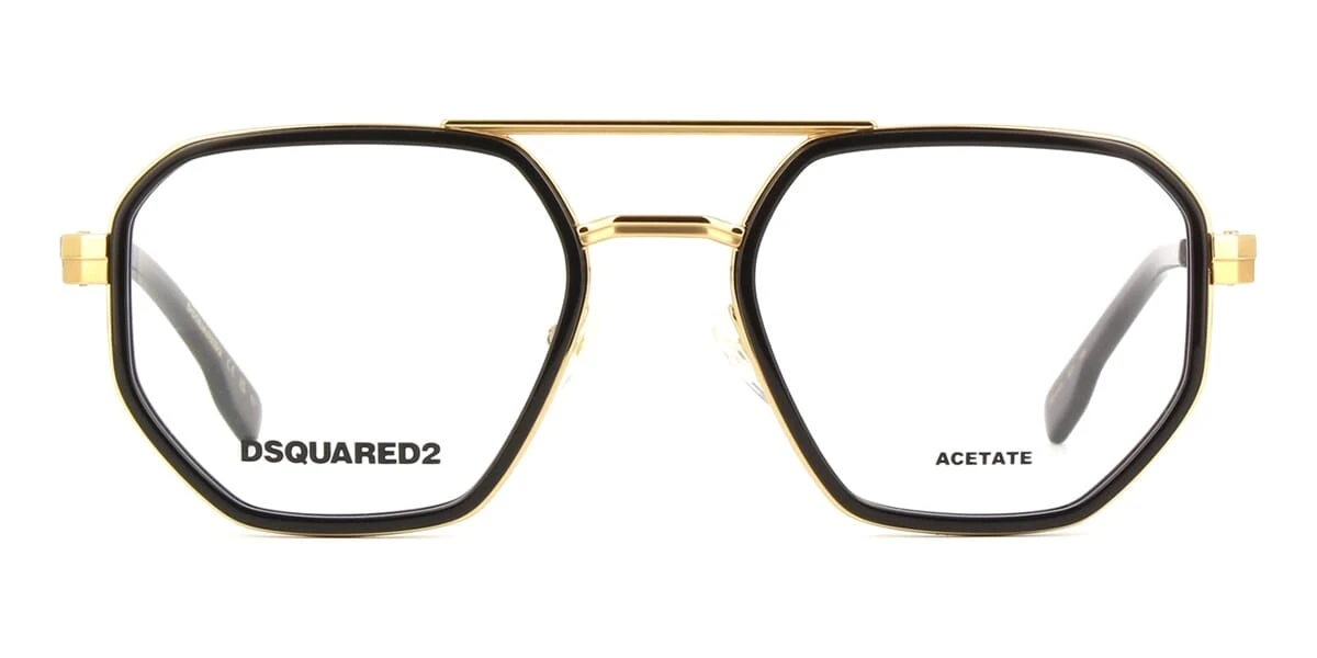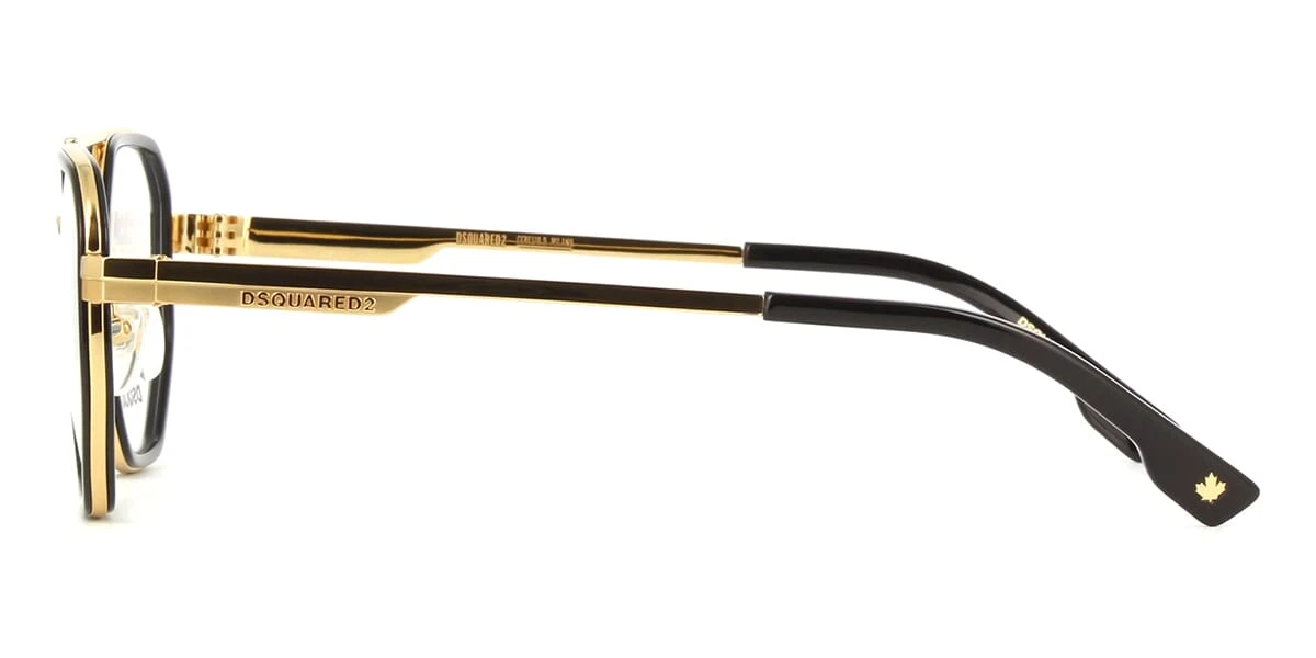 This square Dsquared2 optical comes in a shiny black and gold frame.