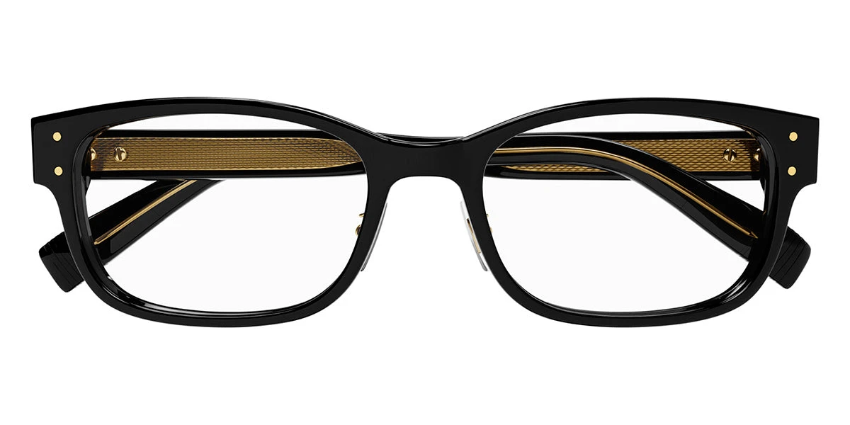 This rectangular Dunhill optical comes in a shiny black with gold frame.