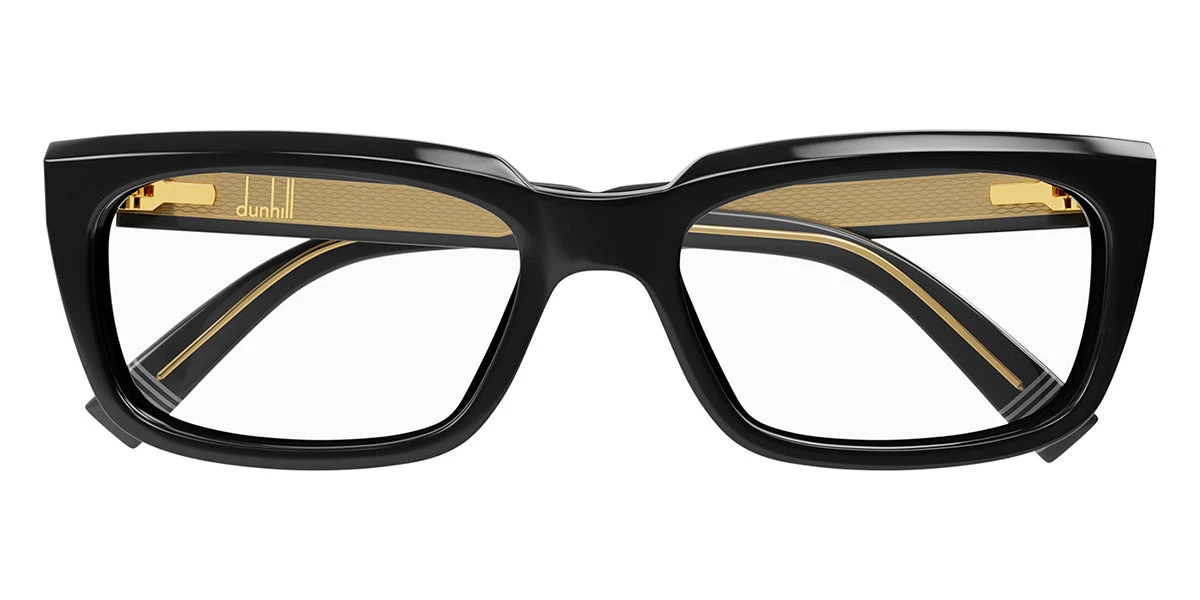 This rectangular Dunhill optical comes in a shiny black with gold frame.