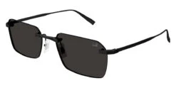 This square Dunhill sunglass comes in a black frame with grey lenses.