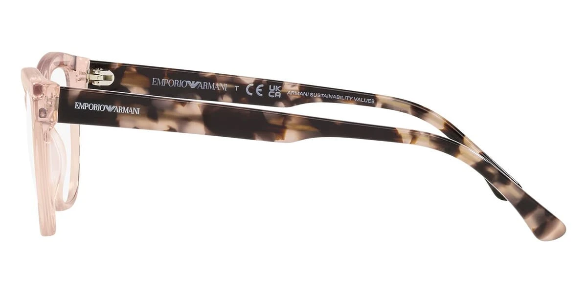 This cat eye Emporio Armani optical comes in a shiny pink crystal frame.