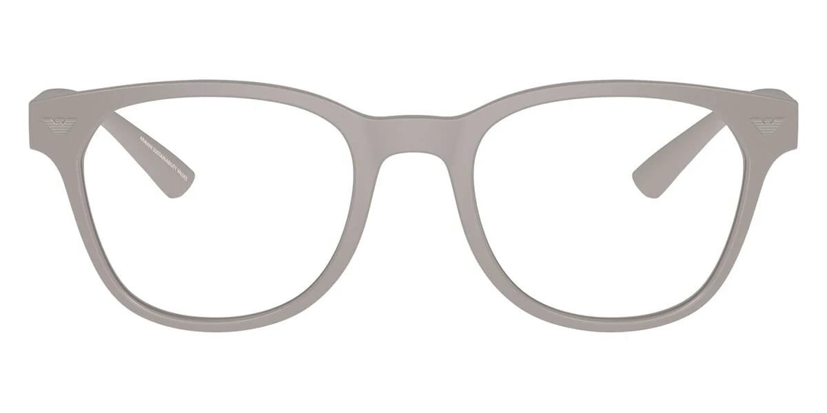 This round Emporio Armani optical comes in a matte light grey frame.
