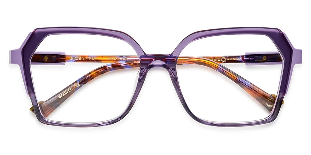 This square Etnia Barcelona optical comes in a crystal purple with shiny lilac and havana frame.