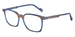 This square Etnia Barcelona optical comes in a metallic brushed copper with matte blue and black frame.